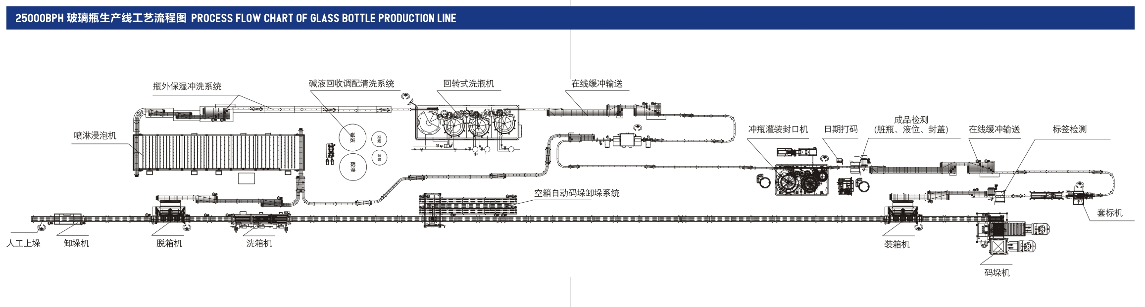 HOME - PRODUCTS - STANDAED PRODUCTION LAYOUT DRAWING - 25000BPH PROCESS FLOW CHART OF GLASS BOTTLE PRODUCTION LINE